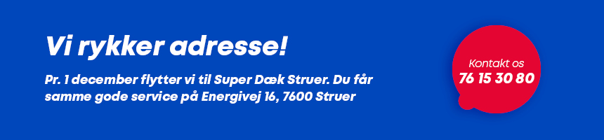 Super Dæk Service i Lemvig er dit komplette autoværksted og dækcenter. Vi tilbyder salg og montering af alle velkendte dækmærker til både person- og varevogne samt landbrugs- og erhvervsmaskiner.